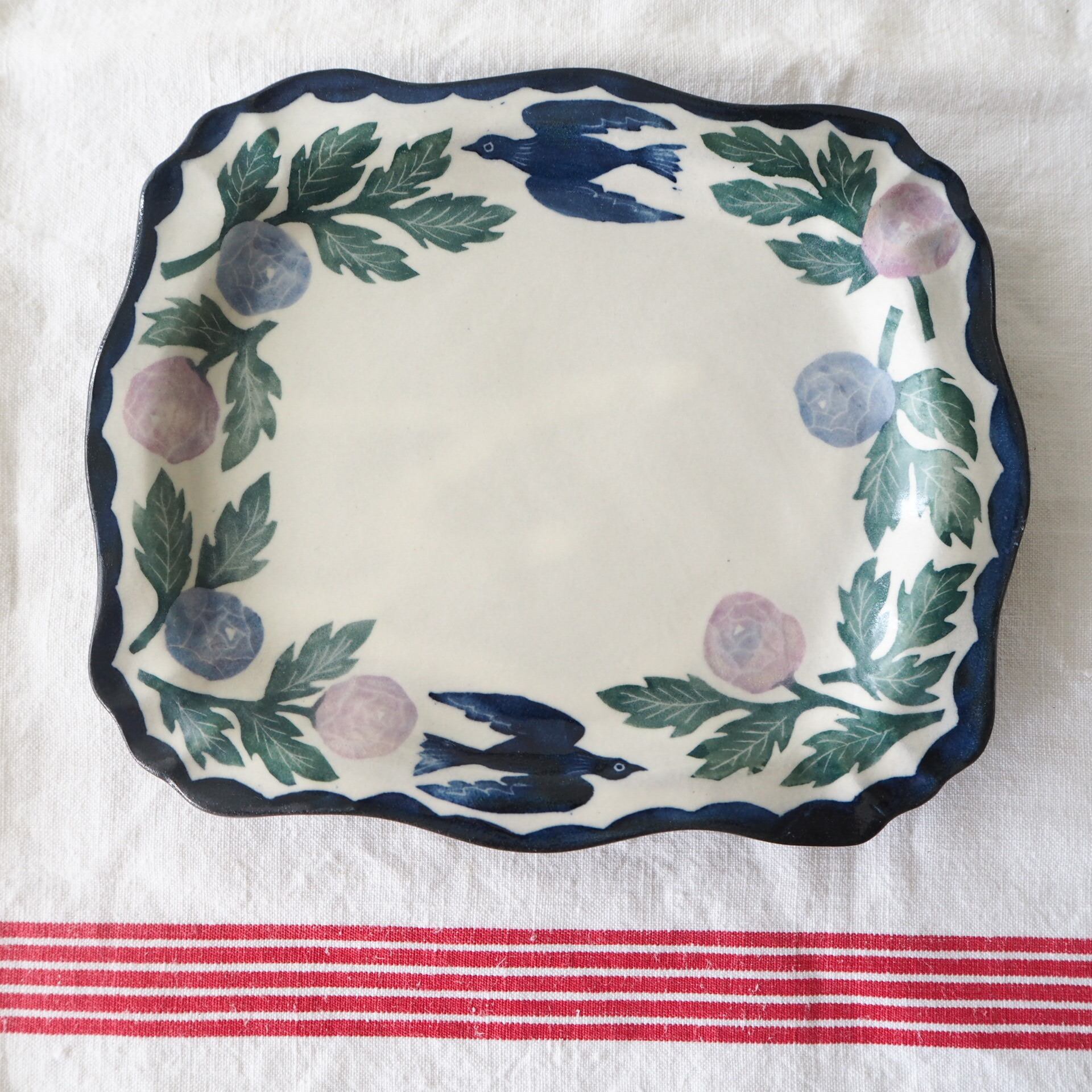 【なかがきともこ】粉引き絵付けプレート 花と鳥